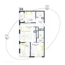 3 комн. квартира в ЖК Космос, площадь 84.87 м², жилая м², кухня м²