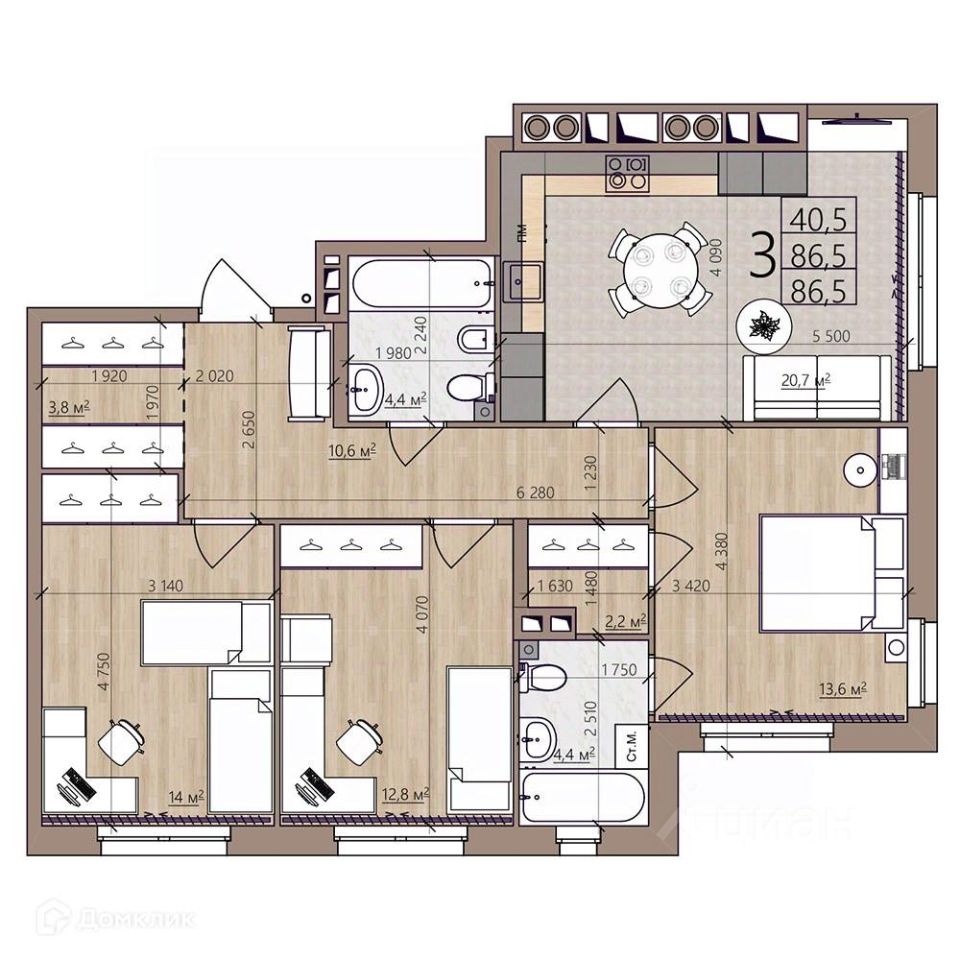 86,5 м²