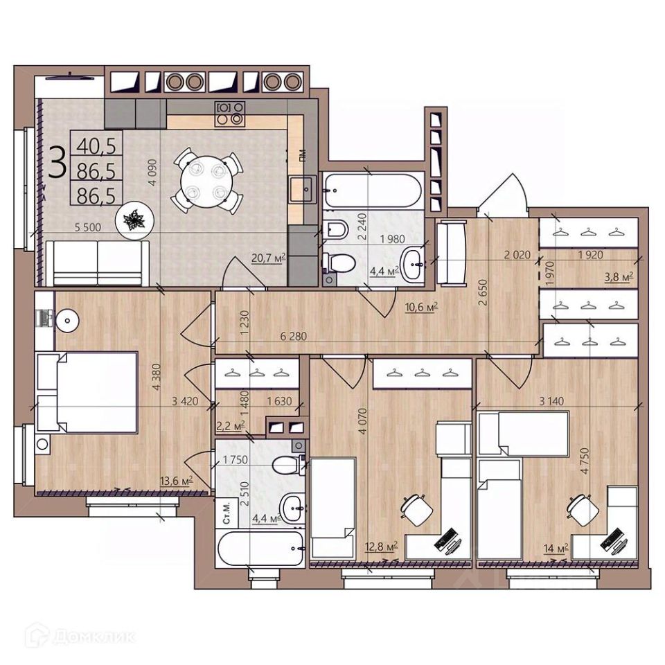 86,5 м²