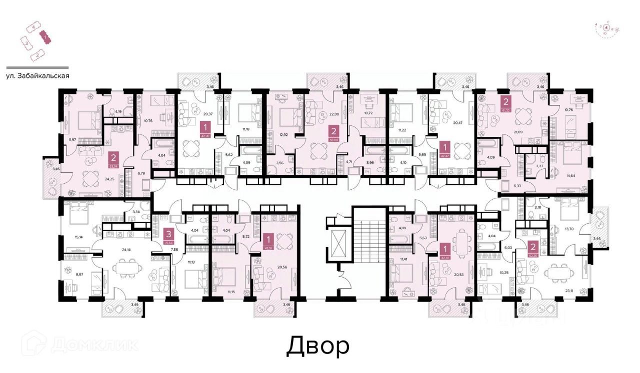 2 комн. квартира в ЖК Квартал Дягилев, площадь 61.22 м², жилая 25.4 м², кухня 21.09 м²
