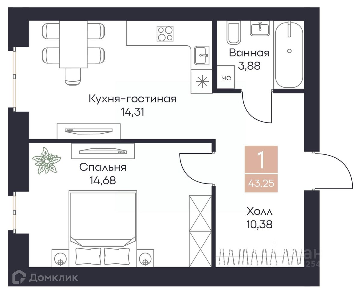 43,25 м²