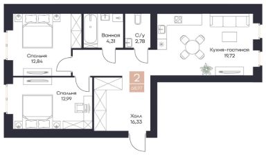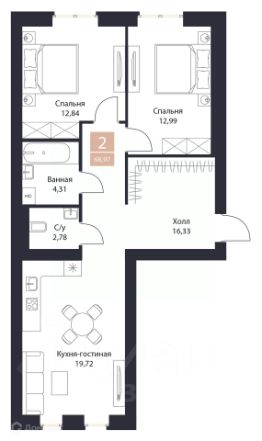 68,97 м²