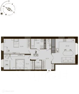 75,4 м²