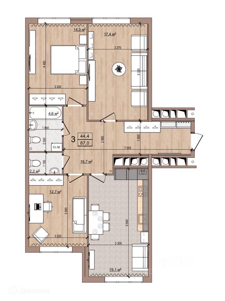 44,4 м²