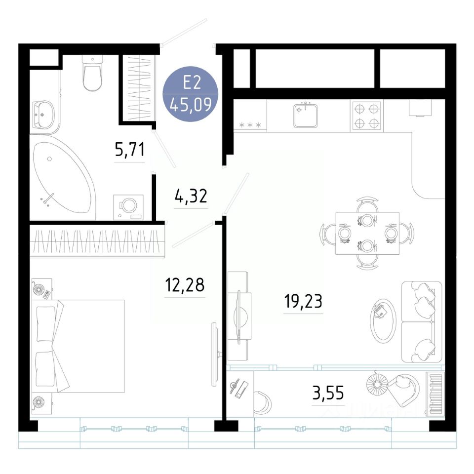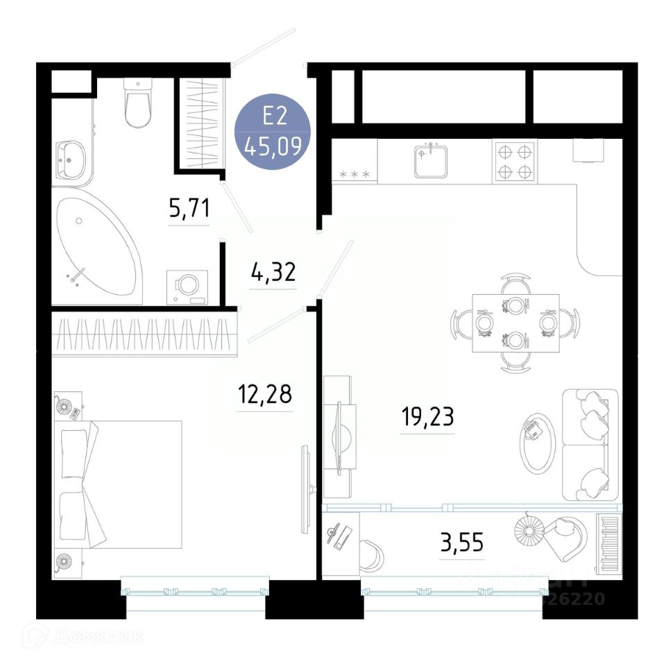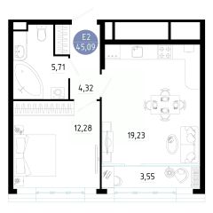 45,09 м²