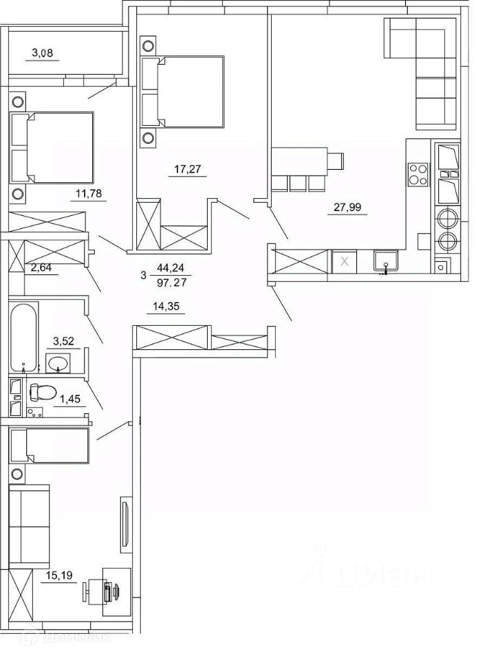 97,27 м²