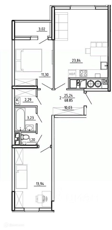 68,85 м²
