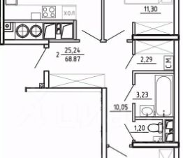 Общая площадь68,87 м²