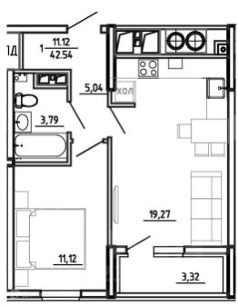 42,54 м²
