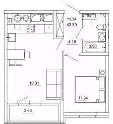 42,39 м²