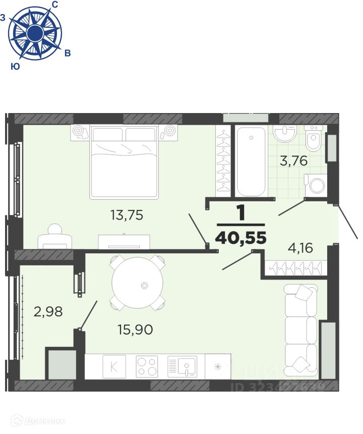40,55 м²