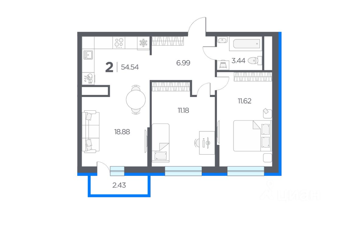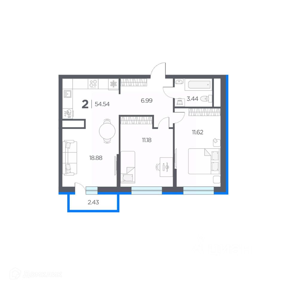 54,54 м²