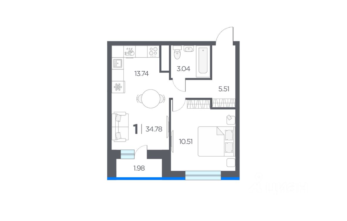 34,78 м²