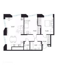 2 комн. квартира в ЖК Манхэттен, площадь 74.38 м², жилая м², кухня м²