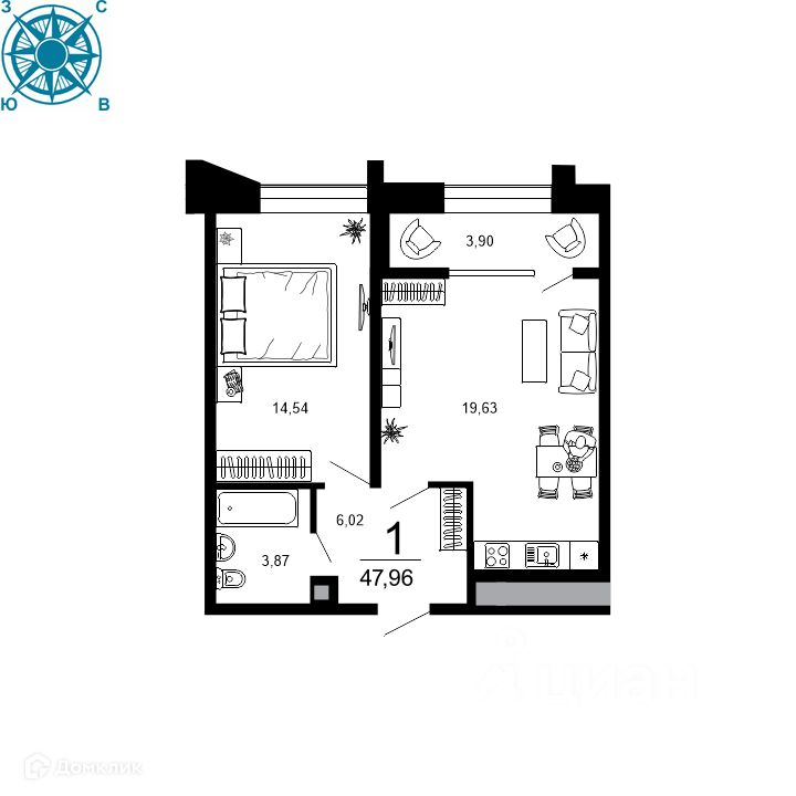 47,96 м²