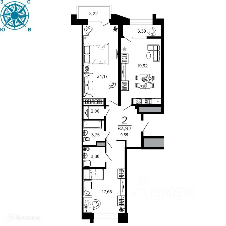 83,92 м²