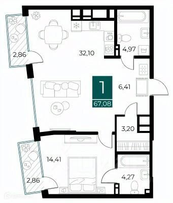 32,1 м²