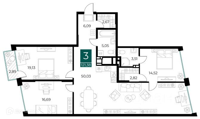 121,38 м²
