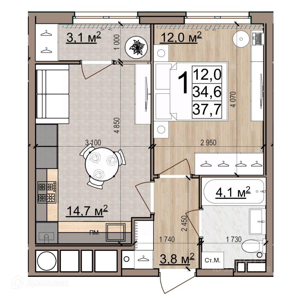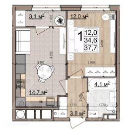 37,7 м²