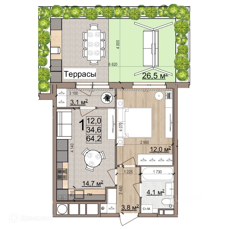 64,2 м²