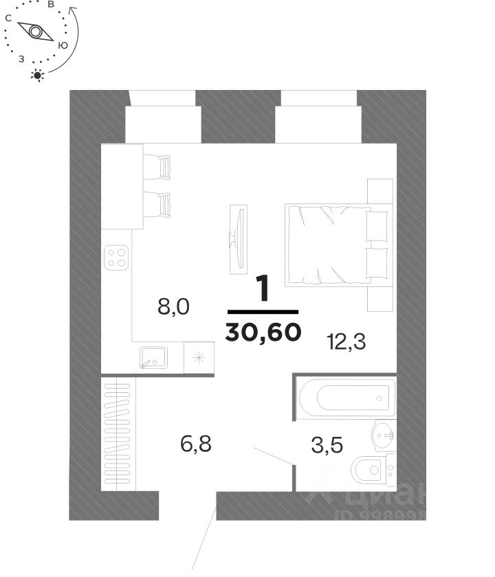 Общая площадь30,6 м²