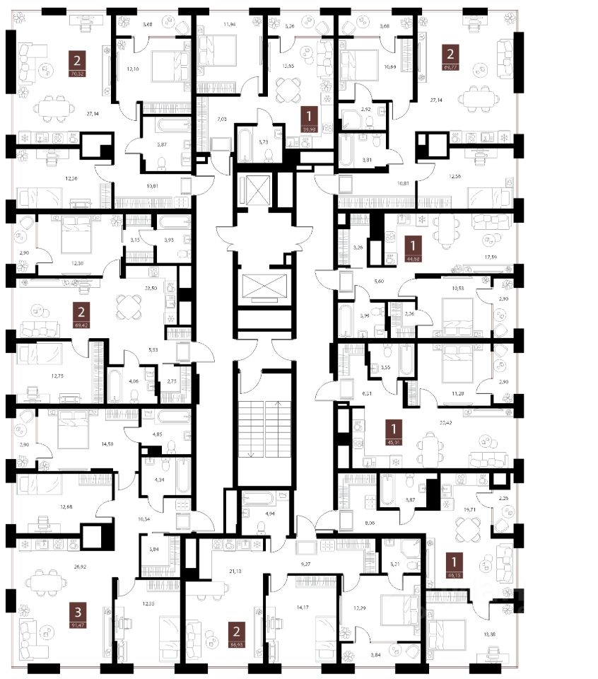 Общая площадь39,98 м²
