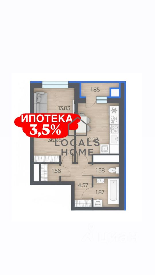 Есть возможность семейной ипотеки от 3,5% годовых или льготная ставка 13,9% на весь срок кредита
