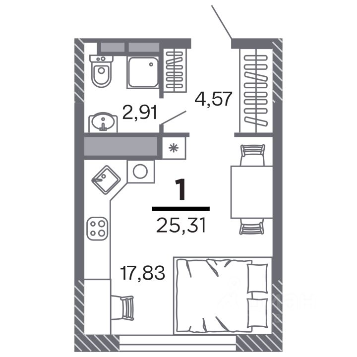 Продаётся 1-комнатная квартира в строящемся доме (Корпус 1), срок сдачи: IV-кв. 2028, общей площадью 25.31 кв.м., на 16 этаже. Новый жилой комплекс "по ул.Быстрецкая" от застройщика "Северная Компания" расположен по адресу Россия, Рязань, Быстрецкая улица.
