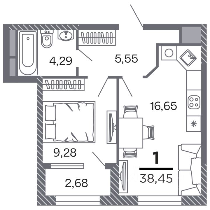 38,45 м²