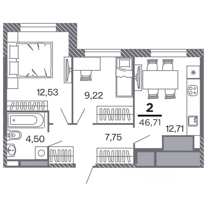 Продаётся 2-комнатная квартира в строящемся доме (Корпус 1), срок сдачи: IV-кв. 2028, общей площадью 46.71 кв.м., на 25 этаже. Новый жилой комплекс "по ул.Быстрецкая" от застройщика "Северная Компания" расположен по адресу Россия, Рязань, Быстрецкая улица.