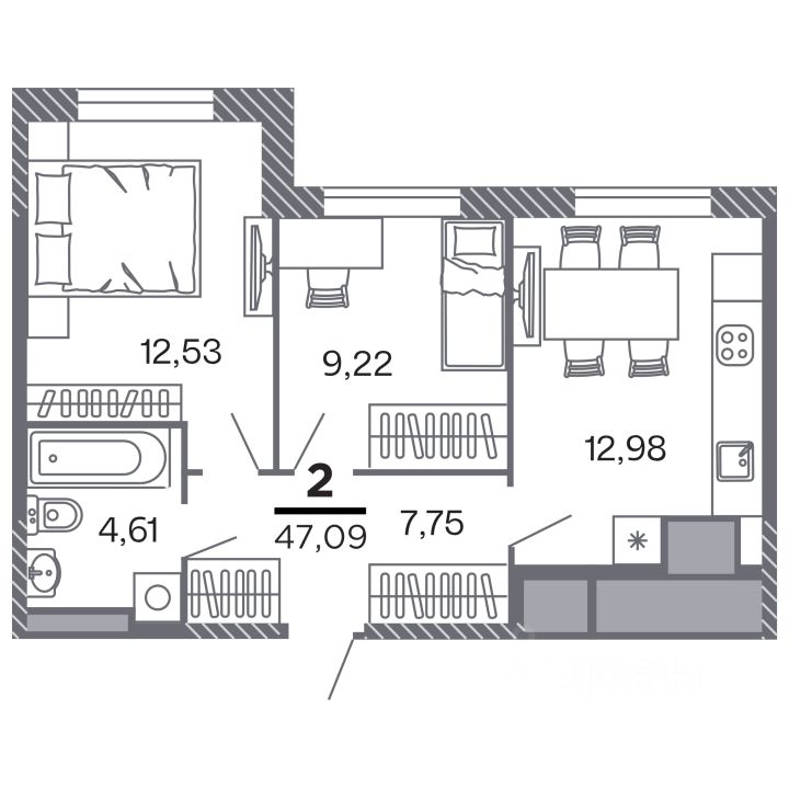 Продаётся 2-комнатная квартира в строящемся доме (Корпус 1), срок сдачи: IV-кв. 2028, общей площадью 47.09 кв.м., на 12 этаже. Новый жилой комплекс "по ул.Быстрецкая" от застройщика "Северная Компания" расположен по адресу Россия, Рязань, Быстрецкая улица.