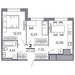 Продаётся 2-комнатная квартира в строящемся доме (Корпус 1), срок сдачи: IV-кв. 2028, общей площадью 47.09 кв.м., на 9 этаже. Новый жилой комплекс "по ул.Быстрецкая" от застройщика "Северная Компания" расположен по адресу Россия, Рязань, Быстрецкая улица.