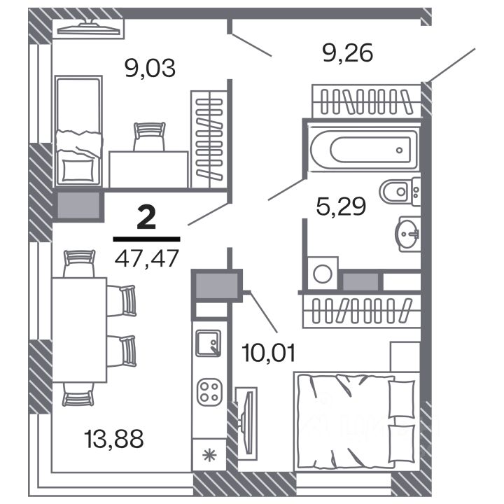 Продаётся 2-комнатная квартира в строящемся доме (Корпус 1), срок сдачи: IV-кв. 2028, общей площадью 47.47 кв.м., на 12 этаже. Новый жилой комплекс "по ул.Быстрецкая" от застройщика "Северная Компания" расположен по адресу Россия, Рязань, Быстрецкая улица.