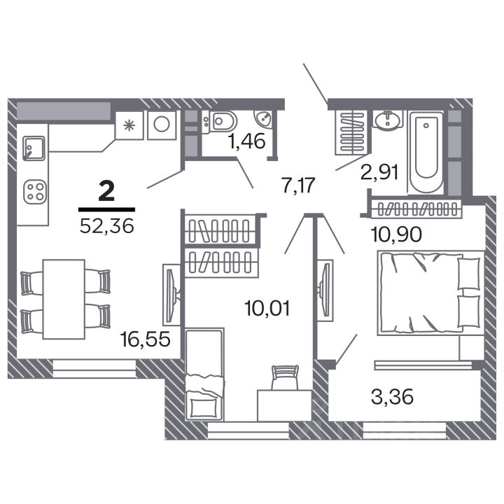 Продаётся 2-комнатная квартира в строящемся доме (Корпус 1), срок сдачи: IV-кв. 2028, общей площадью 52.36 кв.м., на 12 этаже. Новый жилой комплекс "по ул.Быстрецкая" от застройщика "Северная Компания" расположен по адресу Россия, Рязань, Быстрецкая улица.