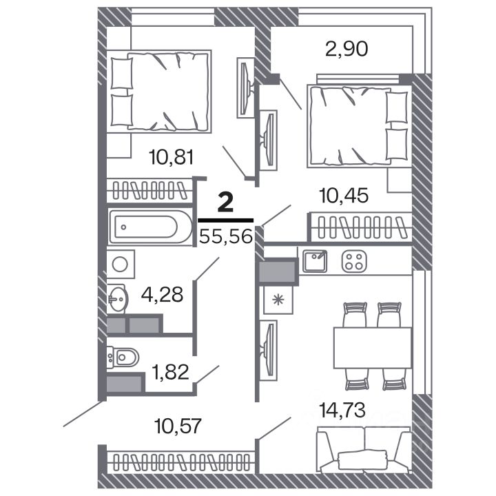 Продаётся 2-комнатная квартира в строящемся доме (Корпус 1), срок сдачи: IV-кв. 2028, общей площадью 55.56 кв.м., на 2 этаже. Новый жилой комплекс "по ул.Быстрецкая" от застройщика "Северная Компания" расположен по адресу Россия, Рязань, Быстрецкая улица.