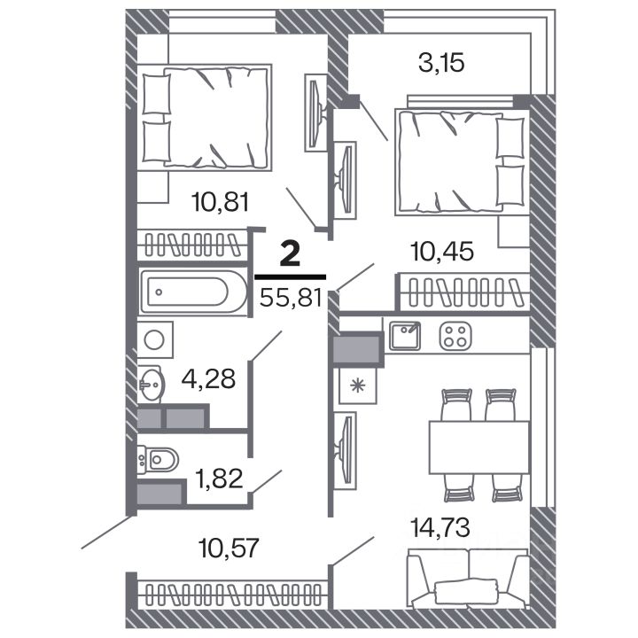 Продаётся 2-комнатная квартира в строящемся доме (Корпус 1), срок сдачи: IV-кв. 2028, общей площадью 55.81 кв.м., на 3 этаже. Новый жилой комплекс "по ул.Быстрецкая" от застройщика "Северная Компания" расположен по адресу Россия, Рязань, Быстрецкая улица.