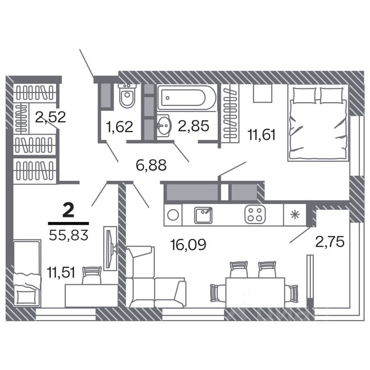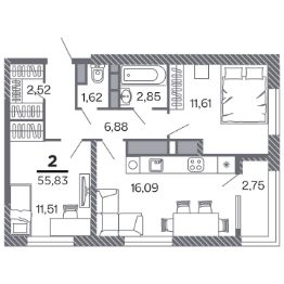 Продаётся 2-комнатная квартира в строящемся доме (Корпус 1), срок сдачи: IV-кв. 2028, общей площадью 55.83 кв.м., на 16 этаже. Новый жилой комплекс "по ул.Быстрецкая" от застройщика "Северная Компания" расположен по адресу Россия, Рязань, Быстрецкая улица.