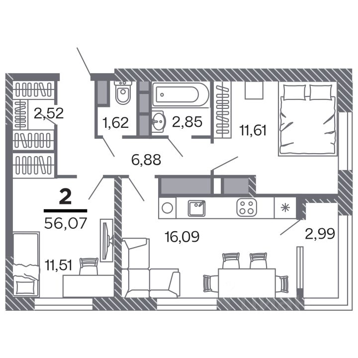 Продаётся 2-комнатная квартира в строящемся доме (Корпус 1), срок сдачи: IV-кв. 2028, общей площадью 56.07 кв.м., на 25 этаже. Новый жилой комплекс "по ул.Быстрецкая" от застройщика "Северная Компания" расположен по адресу Россия, Рязань, Быстрецкая улица.
