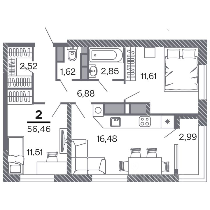Продаётся 2-комнатная квартира в строящемся доме (Корпус 1), срок сдачи: IV-кв. 2028, общей площадью 56.46 кв.м., на 13 этаже. Новый жилой комплекс "по ул.Быстрецкая" от застройщика "Северная Компания" расположен по адресу Россия, Рязань, Быстрецкая улица.