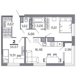 Продаётся 2-комнатная квартира в строящемся доме (Корпус 1), срок сдачи: IV-кв. 2028, общей площадью 56.67 кв.м., на 12 этаже. Новый жилой комплекс "по ул.Быстрецкая" от застройщика "Северная Компания" расположен по адресу Россия, Рязань, Быстрецкая улица.