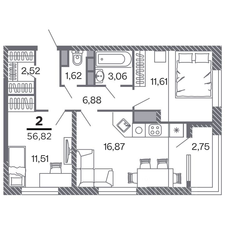 Продаётся 2-комнатная квартира в строящемся доме (Корпус 1), срок сдачи: IV-кв. 2028, общей площадью 56.82 кв.м., на 1 этаже. Новый жилой комплекс "по ул.Быстрецкая" от застройщика "Северная Компания" расположен по адресу Россия, Рязань, Быстрецкая улица.