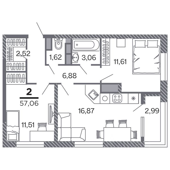 Продаётся 2-комнатная квартира в строящемся доме (Корпус 1), срок сдачи: IV-кв. 2028, общей площадью 57.06 кв.м., на 8 этаже. Новый жилой комплекс "по ул.Быстрецкая" от застройщика "Северная Компания" расположен по адресу Россия, Рязань, Быстрецкая улица.