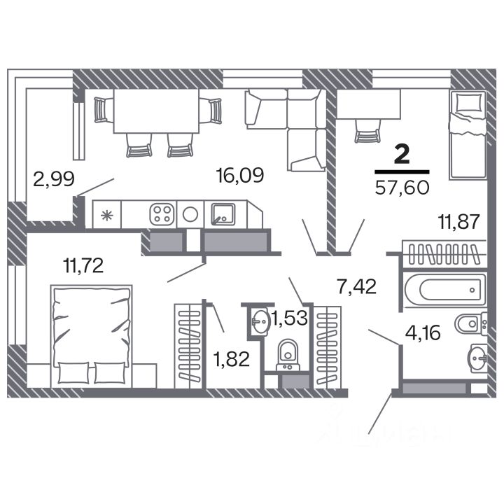 Продаётся 2-комнатная квартира в строящемся доме (Корпус 1), срок сдачи: IV-кв. 2028, общей площадью 57.6 кв.м., на 17 этаже. Новый жилой комплекс "по ул.Быстрецкая" от застройщика "Северная Компания" расположен по адресу Россия, Рязань, Быстрецкая улица.