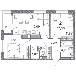 Продаётся 2-комнатная квартира в строящемся доме (Корпус 1), срок сдачи: IV-кв. 2028, общей площадью 57.6 кв.м., на 16 этаже. Новый жилой комплекс "по ул.Быстрецкая" от застройщика "Северная Компания" расположен по адресу Россия, Рязань, Быстрецкая улица.