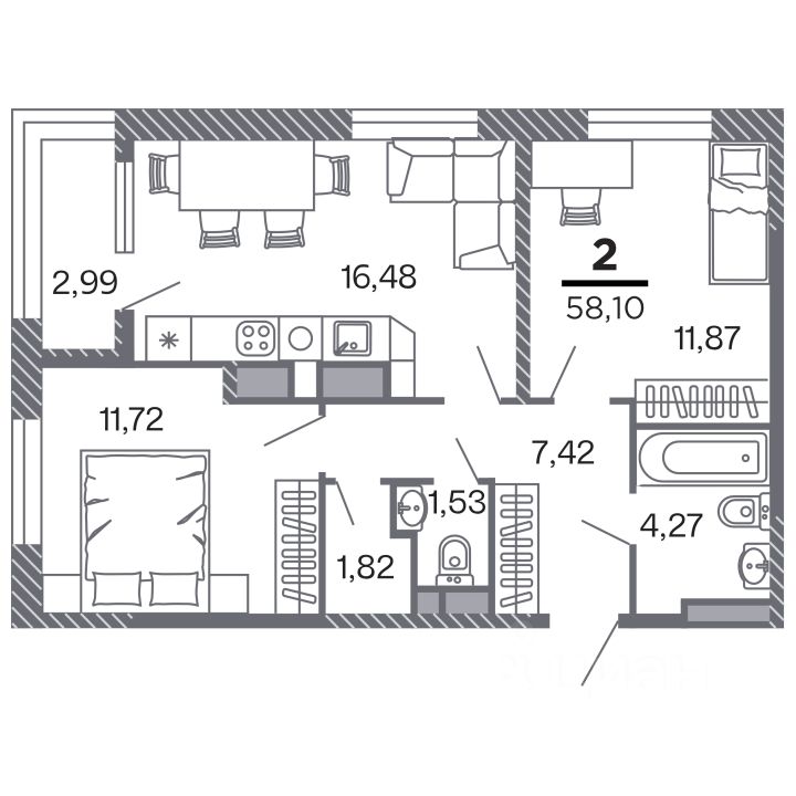 Продаётся 2-комнатная квартира в строящемся доме (Корпус 1), срок сдачи: IV-кв. 2028, общей площадью 58.1 кв.м., на 12 этаже. Новый жилой комплекс "по ул.Быстрецкая" от застройщика "Северная Компания" расположен по адресу Россия, Рязань, Быстрецкая улица.