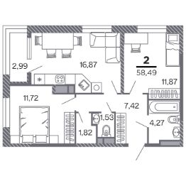 Продаётся 2-комнатная квартира в строящемся доме (Корпус 1), срок сдачи: IV-кв. 2028, общей площадью 58.49 кв.м., на 4 этаже. Новый жилой комплекс "по ул.Быстрецкая" от застройщика "Северная Компания" расположен по адресу Россия, Рязань, Быстрецкая улица.