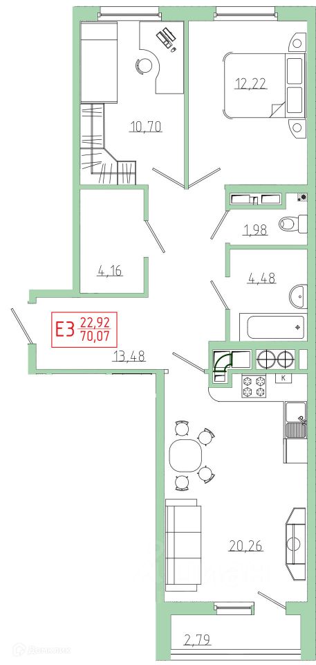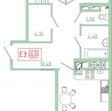70,07 м²