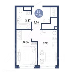 1 комн. квартира в ЖК Бульвар оптимистов, площадь 28.02 м², жилая 8.86 м², кухня 9.93 м²