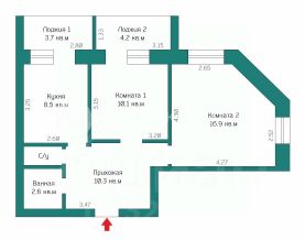 По факту ещё лоджии +7,9 кв.м, итого 57,5 кв.м.