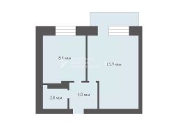 Площадь и планировка: общая площадь квартиры — 32,2 кв. м, жилая — 16 кв. м, площадь кухни — 8,5 кв. м. Высота потолков — 2,6 м.